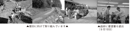 市では、直ちに災害対策本部を立ち上げ、被災状況の把握に努め、被災個所の緊急対応にあたっています。引き続き、1日も早い復旧・復興を目指して取り組みを進めるとともに、被災された方の支援に全力で取り組んでまいります。 |