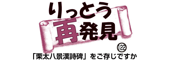 18世紀江戸時代中期の栗太地域の八景観を漢詩に詠んだ八景文化の所産が「栗太八景」です。栗太の名称は市制により消滅しましたが、栗太の地名を後世に伝えようと、この漢詩を石碑にして残すのが栗太八景漢詩碑です。