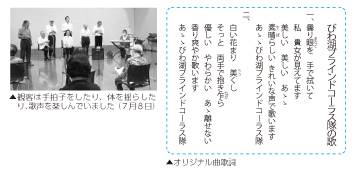 2019年、栗東市視覚障害者福祉協会のメンバーを中心に、視覚障がい者や、その介助者など8人のメンバーで結成。月に1回コミュニティセンター大宝東で練習を行う。介護施設などで演奏会を開催し、歌声を披露。令和4年度元気創造まちづくり事業の助成を受けて活動。