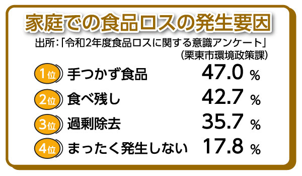 | ■買いすぎない | 買い物の前に家にある食材をチェックする。定期的な冷蔵庫内の在庫管理をする。 |