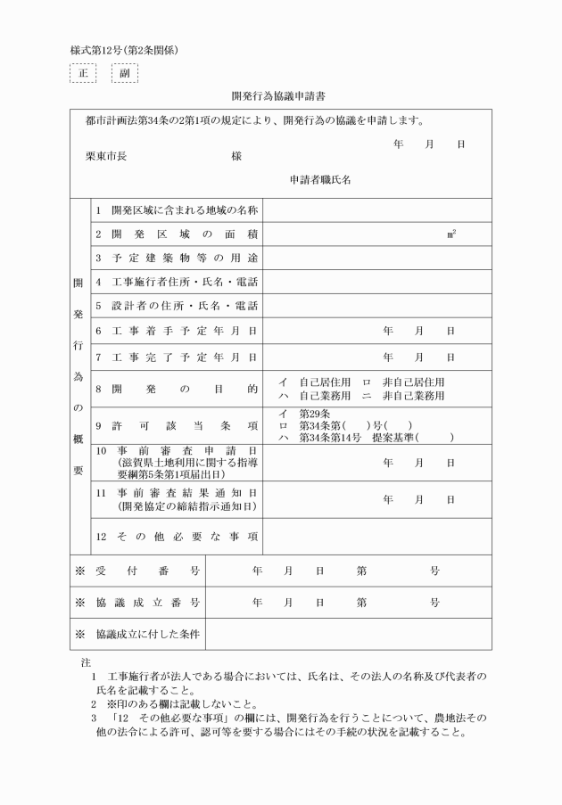 (12) 法第34条の2第1項の規定による開発行為協議申請書 別記様式第12号