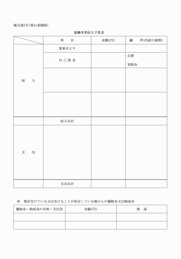 第11条 協働事業を提案しようとする団体は、次に掲げる書類を添えて協働事業提案書(別記様式第1号)を市長に提出しなければなりません。