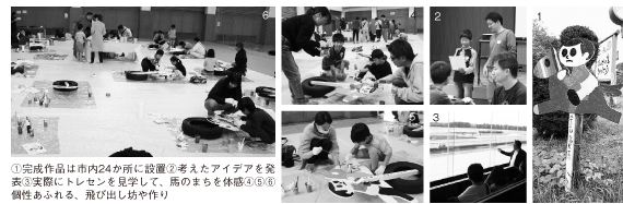実際にトレセンを見学後、活性化につなげる一つとして、子どもたちは各自が「馬に乗った飛び出し坊や」を製作しました。完成した24体は市内の観光施設や小学校などに設置され、馬のまちを感じるきっかけにつながっています。