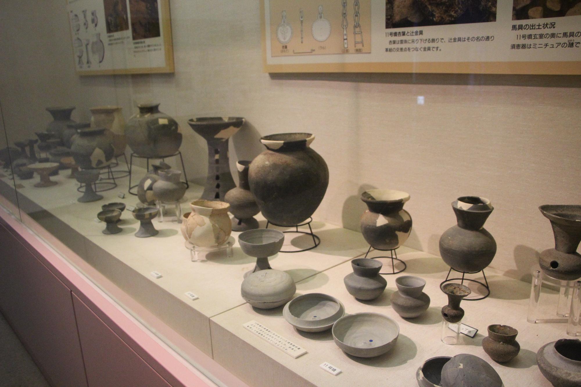 和田古墳群や周辺の遺跡から見つかったたくさんの遺物が展示されている展示室では、装身具や壺など数多くの出土物を見ることができ、発掘当時の様子などもパネルからうかがえます。