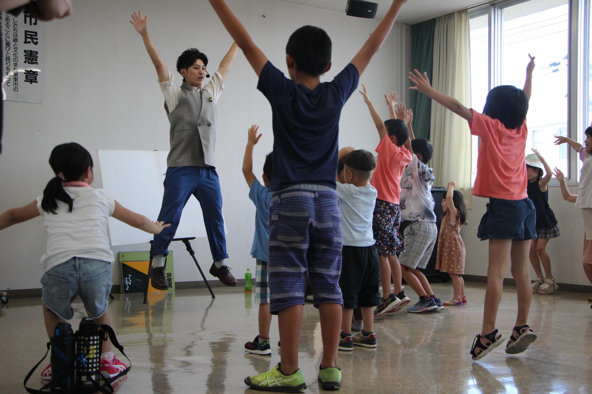 夏休みに入って初めての土曜日、0歳から小学生の子ども達とその保護者が集まり開催されたのは、現役保育士橋本しんのすけさんによる親子で楽しむあそび歌のイベント。