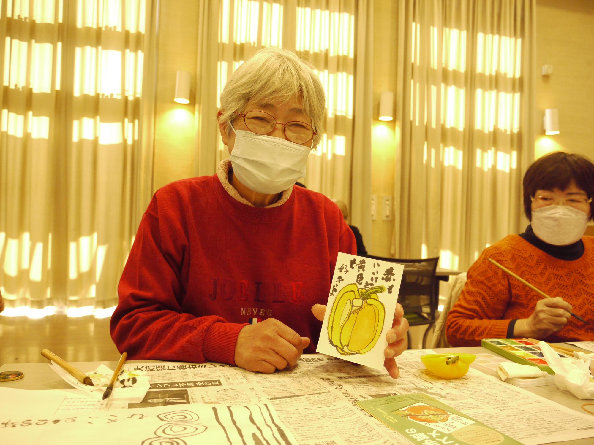 栗東市高齢者の生きがいと健康づくり推進事業の一環で、くりちゃん絵手紙教室が開催され、たくさんの参加者が集まりました。