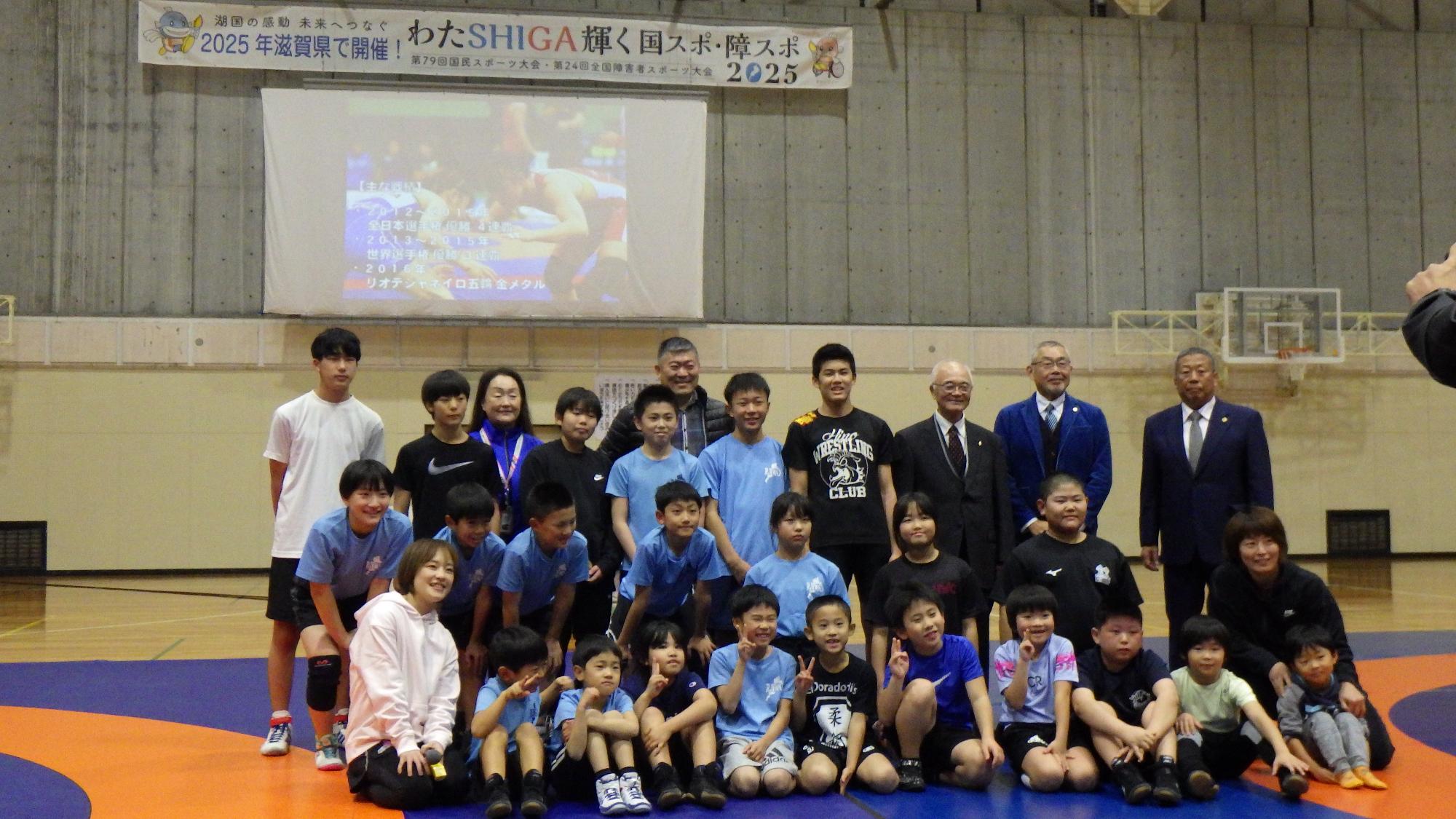ミニレッスンに参加したのは、栗東市スポーツ協会ジュニアレスリング教室や栗東レスリングクラブのレスラー22人。