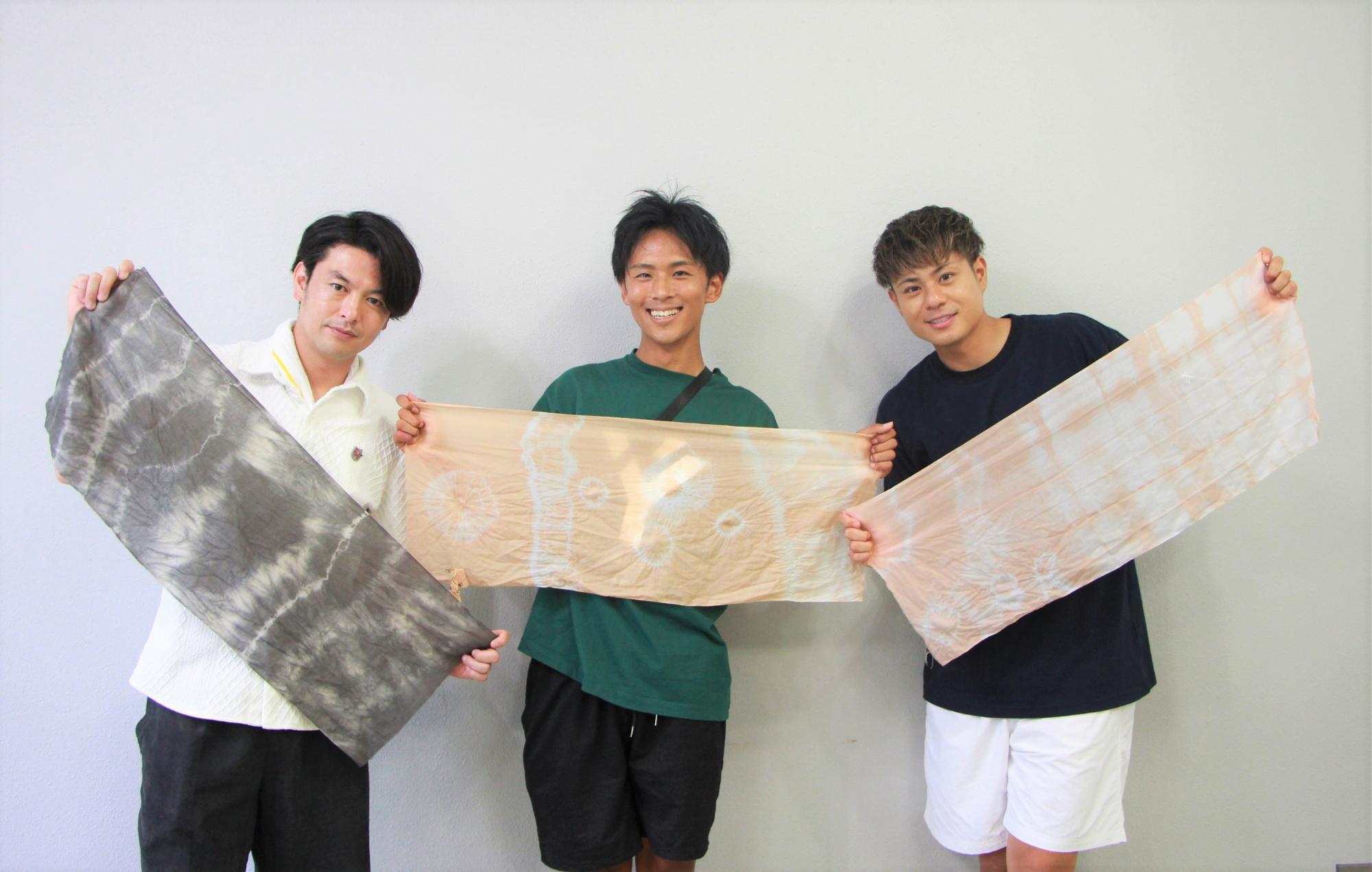 「草木で染めて、こんなきれいに色が出るの!?」と驚く声もあり、デザインの見せ合いをして会話が弾みました。